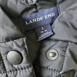 Lands End Puffer Quilted Black Vest Womens Size L 14-16 Nylon Down Gorpcore