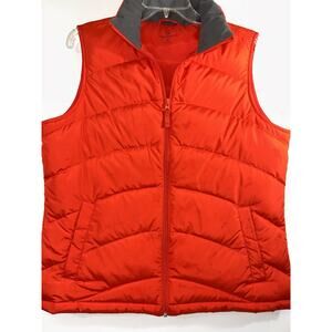 Lands End Puffer Vest Womens Orange Quilted Down-Filled Full Zip Women’s Medium