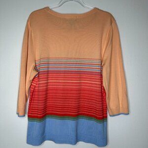 Lands End Pullover Sweater Size 1X Orange Multicolor Stripe Supima Cotton