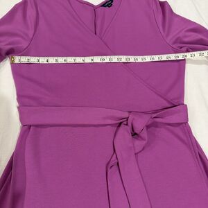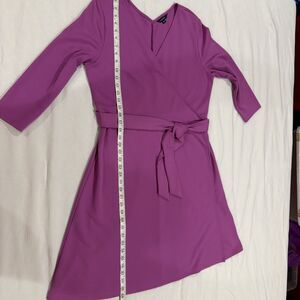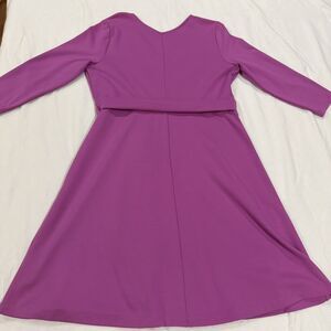 Lands End Purple Faux Wrap V Neck Dress Size Large 14-16 Tie Waist Long Sleeve