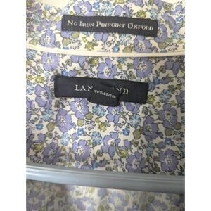 Lands' End Purple Floral Button Up Shirt Size 18 3/4 Sleeve No Iron Pinpoint