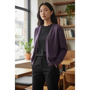 Elevated layering meets subtle sparkle in this Lands’ End cardigan, designed in a rich purple hue with decorative beading along the neckline and front opening. The hook‑and‑eye closure adds a tailored touch, while the cotton‑rich stretch blend offers comfort, breathability, and structure. A versatile piece for fall styling, capsule layering, or bundle‑smart gifting.