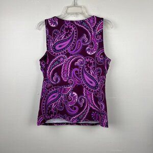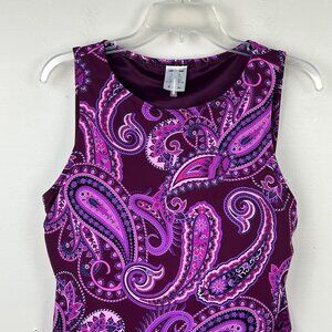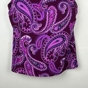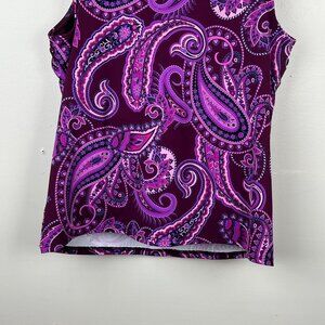 Lands' End Purple Paisley Tankini Swim Top w/ Padded Shelf Bra