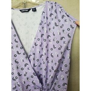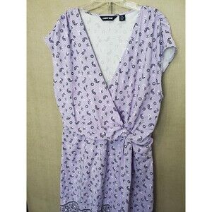 This is a Lands End Purple Scarf Print Surplice Neck Twist Front Knit Midi Dress Size 1X