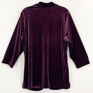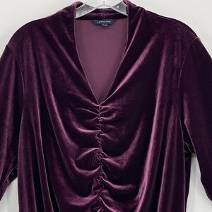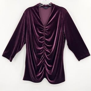Lands’ End Purple Velvet Ruched V-Neck Blouse Top 1X/16W-18W