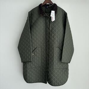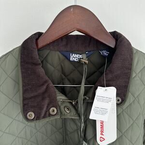 Lands' End Quilted Coat Womens 2X Olive Quilted Barn PrimaLoft Packable Corduroy