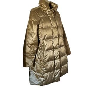 Lands End Quilted Goose Down Puffer Coat Womens Large 14/16 Gold Feathers Satin