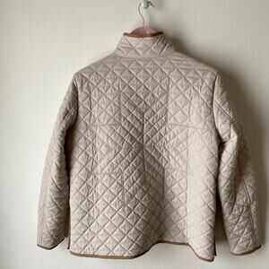 Cream color mock-neck quarter button-down quilted puffer pull-over long sleeve top by Lands’ End. Great preowned condition. Size M/P. Measurements in photos.