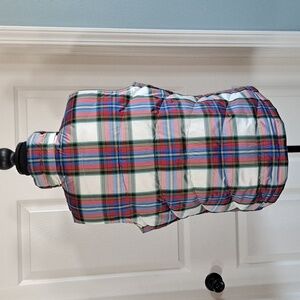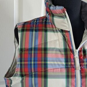 Land's End Quited Plaid Tailored Fitted Zip Preppy Nautical Puffer Coat Vest