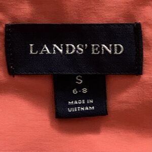 Stay dry and stylish with this orange Lands' End rain jacket, perfect for women who love classic fashion. The mid-length jacket features a full zip closure for added convenience, while the detachable hood keeps you protected during unexpected rain showers. The jacket is made of 100% nylon outer shell material in a solid pattern. It's machine washable, making it easy to clean.