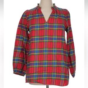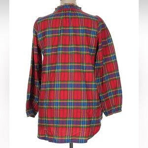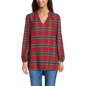 Lands' End Rainbow Brushed Flannel Ruffle Split Neck Tunic Blouse Size Large 14