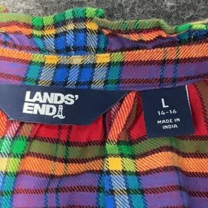 Lands' End Rainbow Brushed Flannel Ruffle Split Neck Tunic Blouse Size Large 14 16