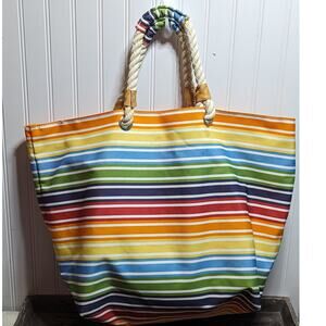 Lands End Rainbow Multicolor Beach Tote Bag Rope Handles. Pre owned-gently used.
