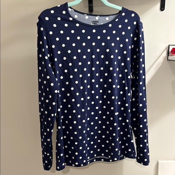 Never worn, navy and white polka dot rash guard/swim shirt size L