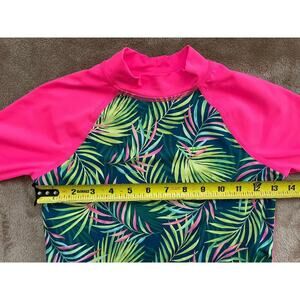 Lands End Rash Guard Swim Shirt Pink/Palms Girls‎ Size Medium