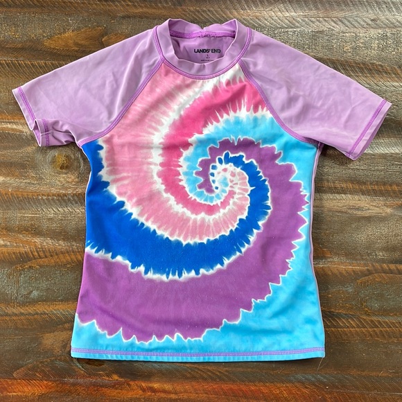 Adorable tie-dye Lands End rash guard. In good used condition. Some pilling on the front shown in photo. Check out the other items in my closet to bundle and save.