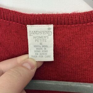 This vintage Lands' End Red 100% Boiled Wool Button Up Vest in Women's size 16P is a timeless piece perfect for the fall and winter seasons. Made with high-quality knit fabric, this solid red vest features a classic button closure and a short length, making it versatile for various occasions such as travel, parties, casual outings, and business events. The lightweight design adds comfort to the piece, while the Christmas and holiday themes add a festive touch to the overall 80s and 90s style. Perfect for petite women looking to stay warm and stylish this season.