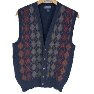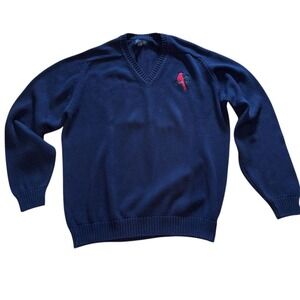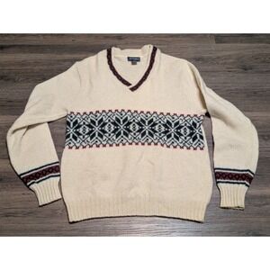 Lands' End Red 100% Cotton Knit Festive V-neck Men's Sweater Size XL 46-48