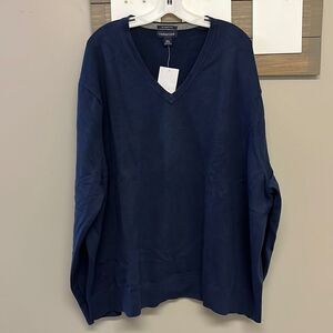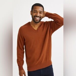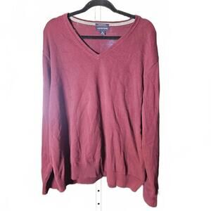 Lands' End Red 100% Cotton Knit Long Sleeve V-neck Men's Sweater Size XL 46-48