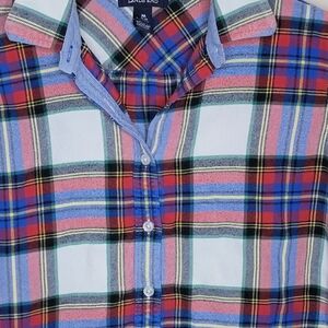 Lands' End | Red Blue Green Yellow White Black Plaid Flannel Button Front Shirt.
