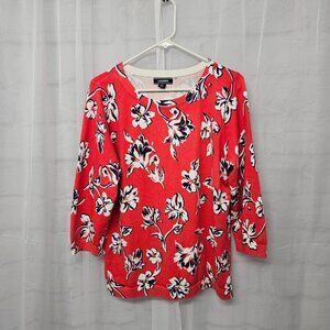 Lands' End Red Blue Tropical Floral Sweater Beach Cotton Summer M