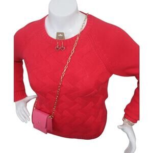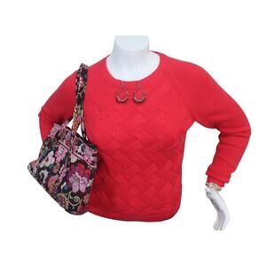 This Lands' End sweater in red is perfect for the winter and fall seasons. With a solid pattern and cable-knit design, it features a crew neck and long sleeves, making it a cozy choice for any occasion. The sweater is made of polyester and comes in size XL, with a regular fit for women. It has a pullover style and is branded by Lands' End. Ideal for casual and comfortable wear, this sweater is a great addition to any wardrobe.