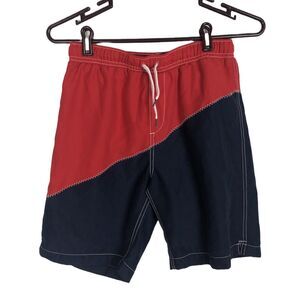 Lands' End Red Navy Blue Swim Shorts Boys Large 14-16 Inner mesh cut out