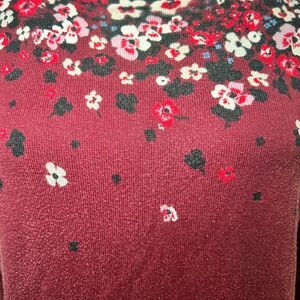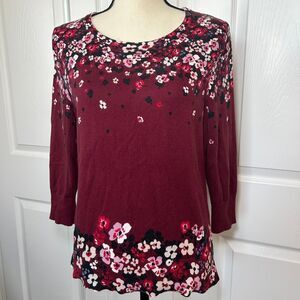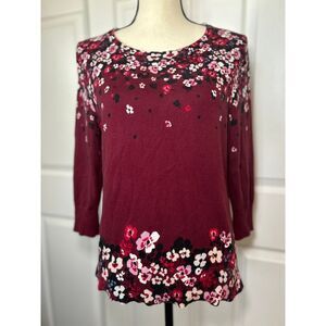 Land's End Red Pink Floral Crewneck Sweater Supima Cotton MP Medium Petite
