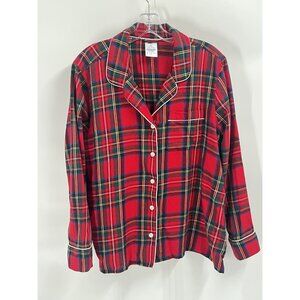 Lands End Red Plaid Cotton Pajama Set Womens Sz Large