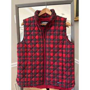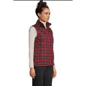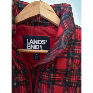 Lands' End Red Plaid Insulated Vest Women's M