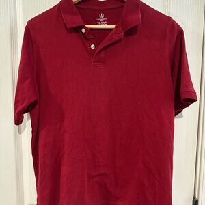 This Lands' End polo shirt showcases a rich red hue and a classic design with short sleeves. Crafted from a comfortable knit fabric, it offers a versatile style perfect for casual settings. Comfortable school uniform top