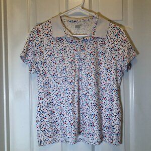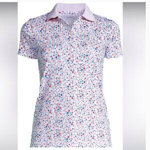 Lands' End Red White & Blue Stars Stretch Collared Cotton Polo Size MP EUC