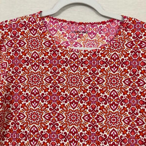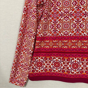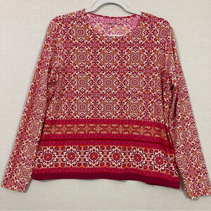 Lands' End Red White Geometric Stretch Sun Protection Long Sleeve Top Large