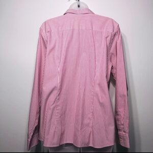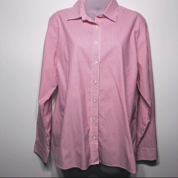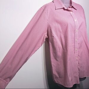 Land's End Red White Stripe Button Shirt No Iron Pinpoint Oxford Women's 8 EUC