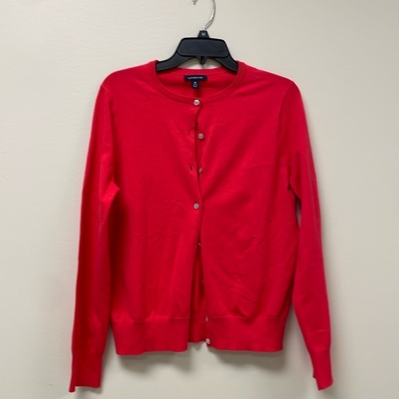 Vibrant red cardigan. Button-up front. Soft and comfortable fabric.