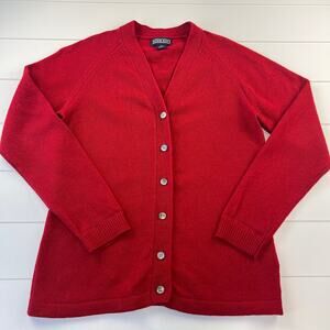 Lands End Red Wool Cardigan Sweater women’s size small