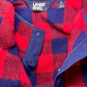 Experience the perfect blend of style and comfort with this Lands' End fleece pullover, featuring a vibrant red and blue plaid pattern. Ideal for casual outings, this fleece pullover offers a soft, flannel feel that ensures all-day comfort. Embrace a timeless look with this classic button-down design.