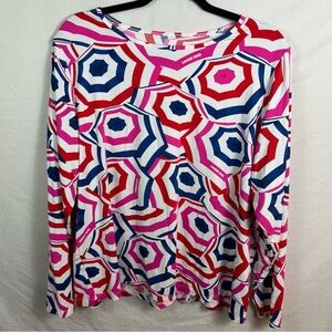 Lands' End Red and Blue Patterned Blouse Womens Size 1X