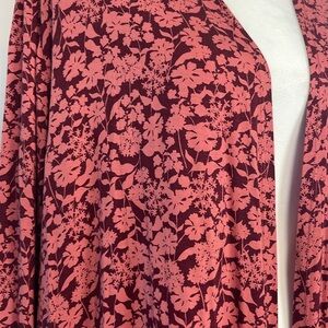 Lands End Red/Pink Floral Midi Length Open Front Cardigan/Sweater. Plus Size 2X
