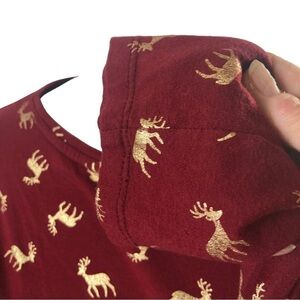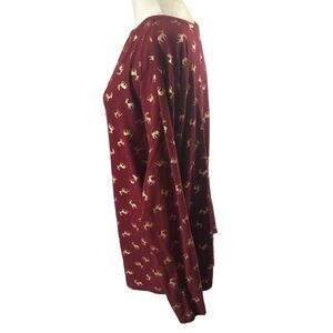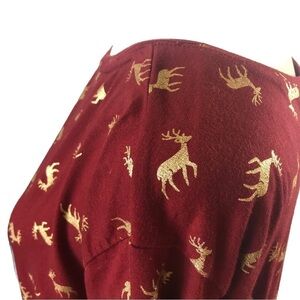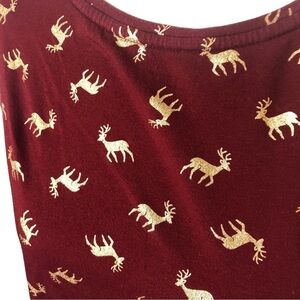 Lands End Reindeer Tee Women XL Cranberry with Gold Deer Cotton Modal