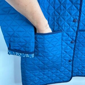 Lands End Reversible Insulated Barn Coat S Blue Floral Quilted Primaloft Fall