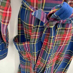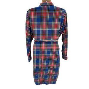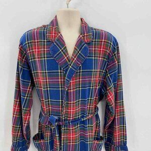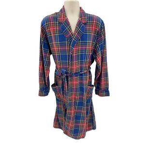 Lands' End Robe Mens Large 42-44 Red Blue Tartan Plaid 100% Cotton Belt Pockets
