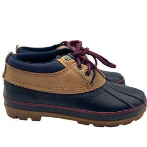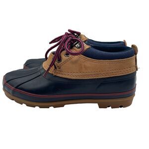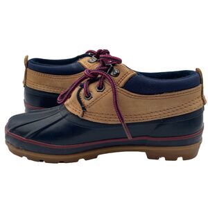 Lands End Rubber Duck Boots Lace Up Green Tan Waterproof Low Womens Size 7