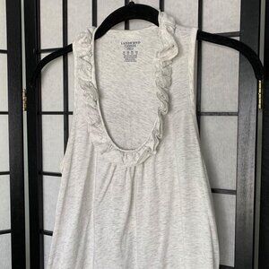 Lands End Grey Ruffled Scoop Neckline Tank Top Grey White X-Small