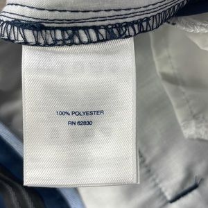 Lands’ End School Uniform Boys Active Chino Shorts, Navy Blue, size 10. In good used condition but does have one area in front right thigh that shows wear- shown in pictures. Original waist button has been replaced. See pictures for fabric content.
