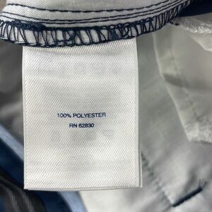 Lands’ End School Uniform Boys Active Chino Shorts, Navy Blue, size 12. In good used conditon, has a spot that shows wear on front right thigh shown in picture. See pictures for fabric content.