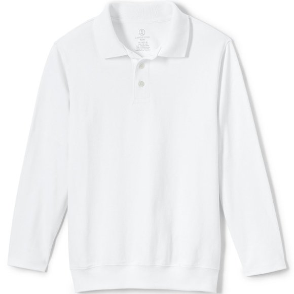 Lands End School Uniform Kids Long Sleeve Polo Shirt White boys girls size 14 16