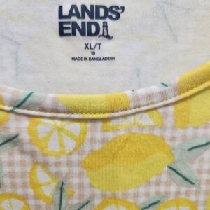 Lands End Scoop Neck Tan Gingham Lemon Print Novelty Tank Top Size XL Summer
