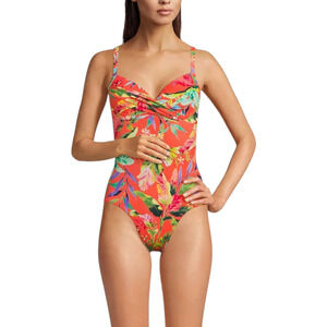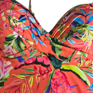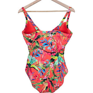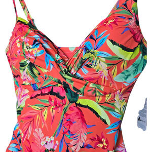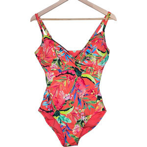 Lands' End Sculpting One Piece Swimsuit Coral Multi Palm Size 14 NWT