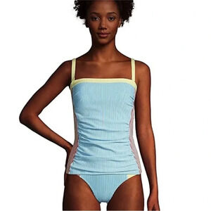 Lands' End Seer Sucker Striped Strapless Bandeau Tankini Top